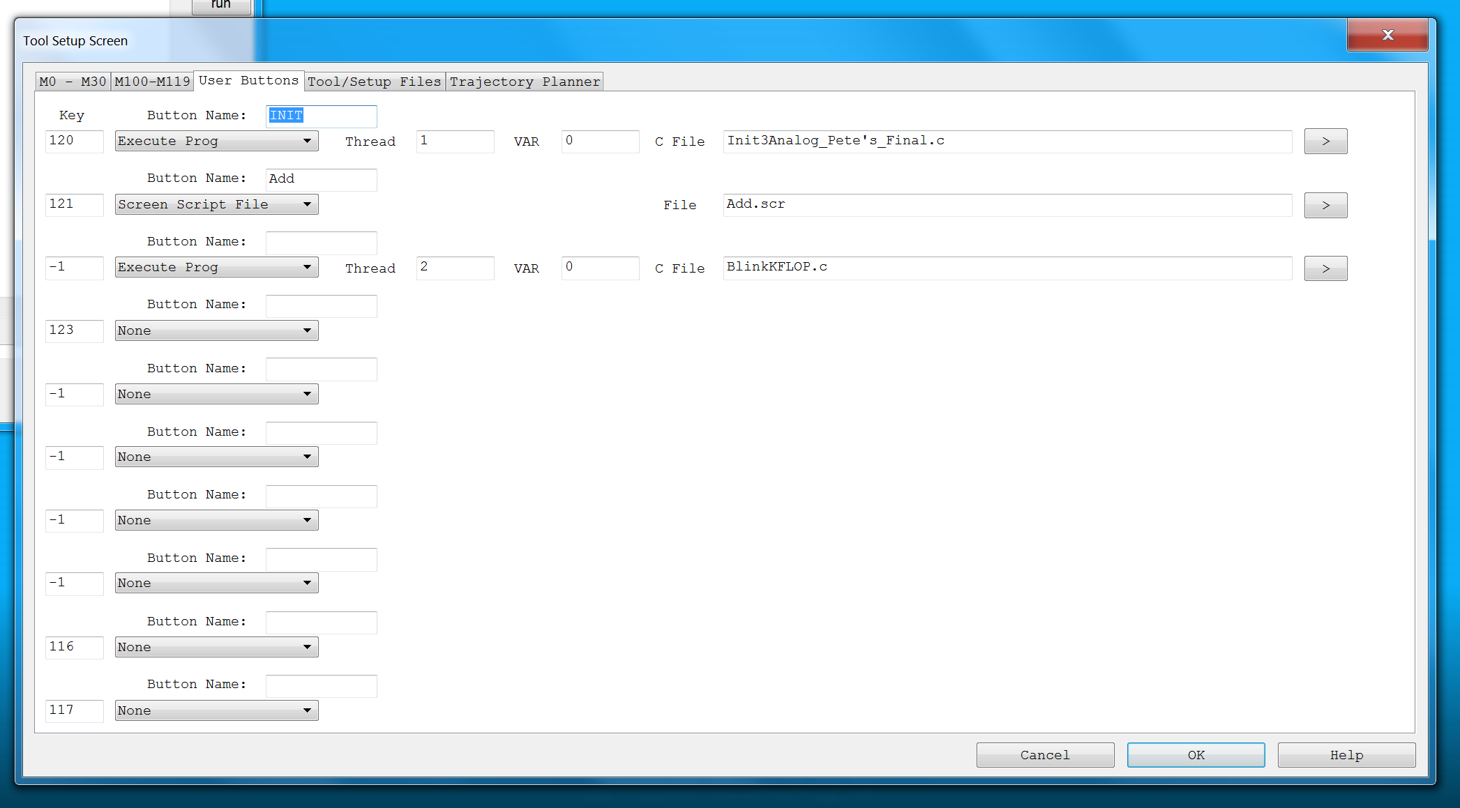 | 010 | KMotionCNC -- Tool Setup Screen "User Buttons" Settings (Click on Image for larger Image) | |  |